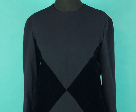 Black Geometric Triangle Velvet Vintage 80s Amanda Fielding Long Sleeve Shift Cocktail Formal Gothic Dress Size 4