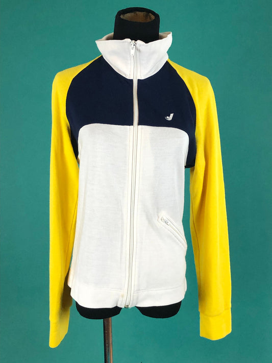 Blue Yellow and White Zip Up Jantzen Vintage 70s Athletic Cotton Warm Up Track Jacket size Medium