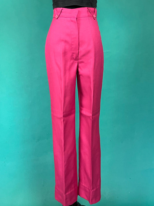 60s Hot Pink High Waist Pleat Triangle Belt Loop Dress Trouser pants size 7/8 XXS