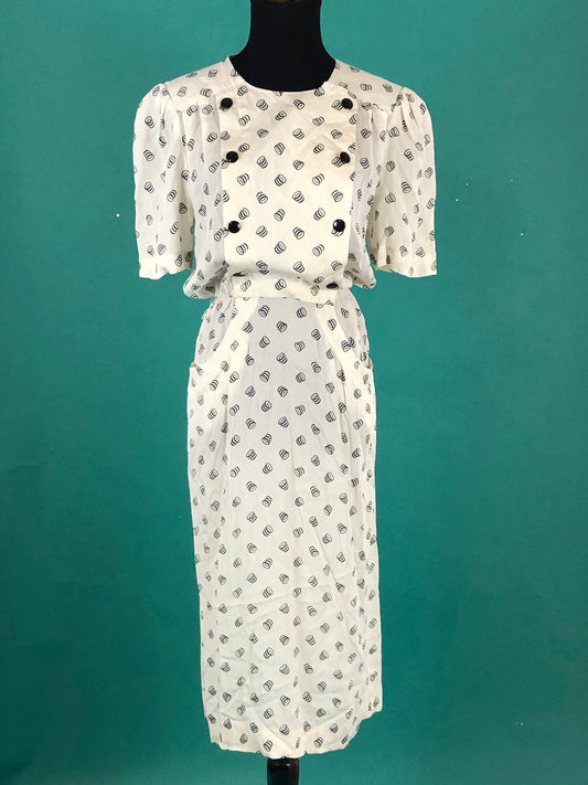 Albert Nipon Swirl Dress Vintage 80s Double Breasted Pocketed Blouson Short Sleeve Pleated Top Dress size 6