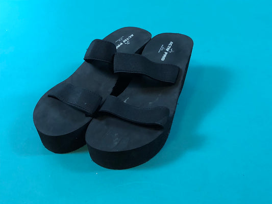 Black Foam Y2K Double Strap Strappy Vintage 90s Platform Wedge Activ Pro Raver Sandals size 9 10 Large