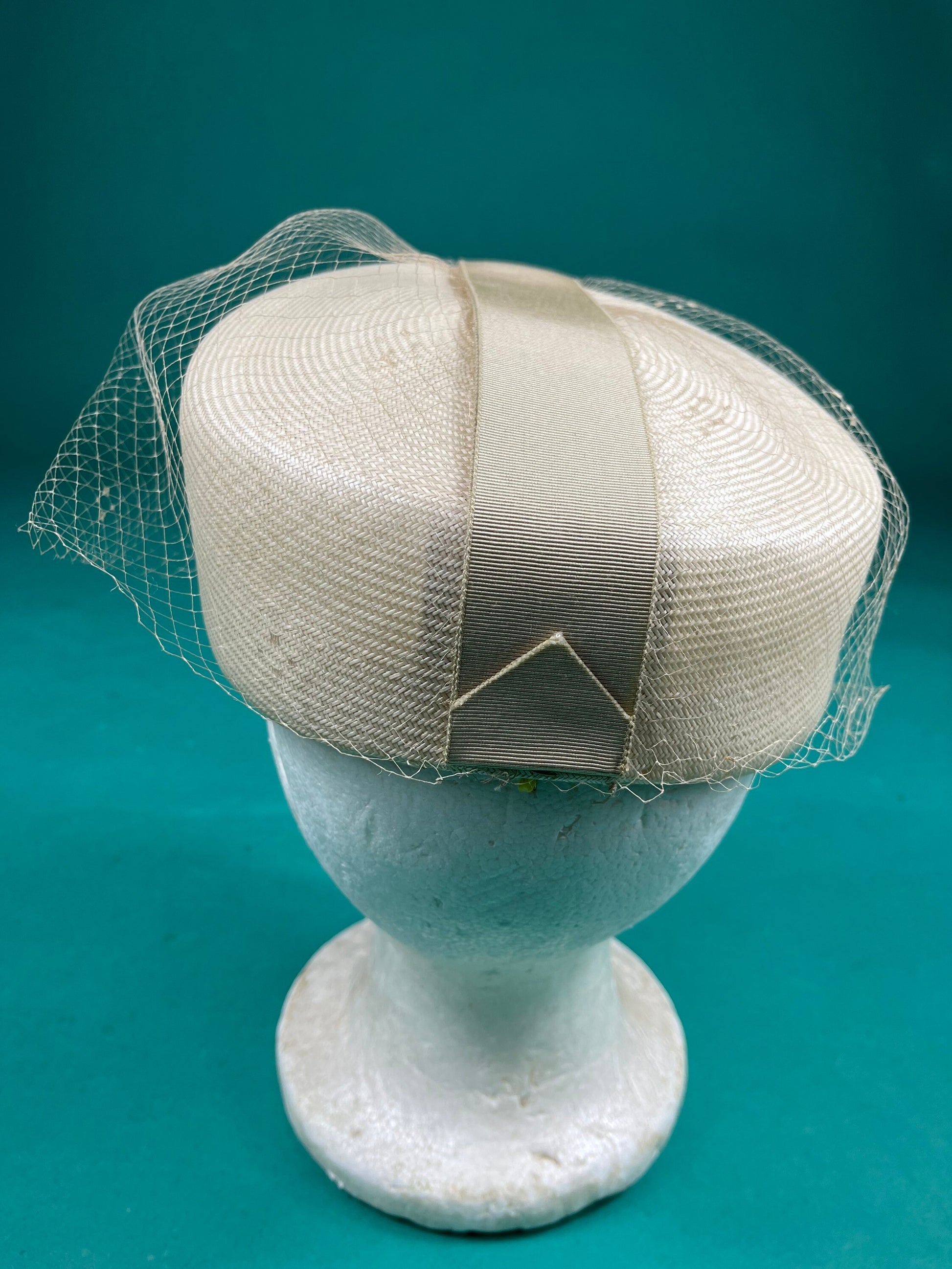 Cream Lace Vintage 50s Sonni of California Formal Veil Pillbox Hat