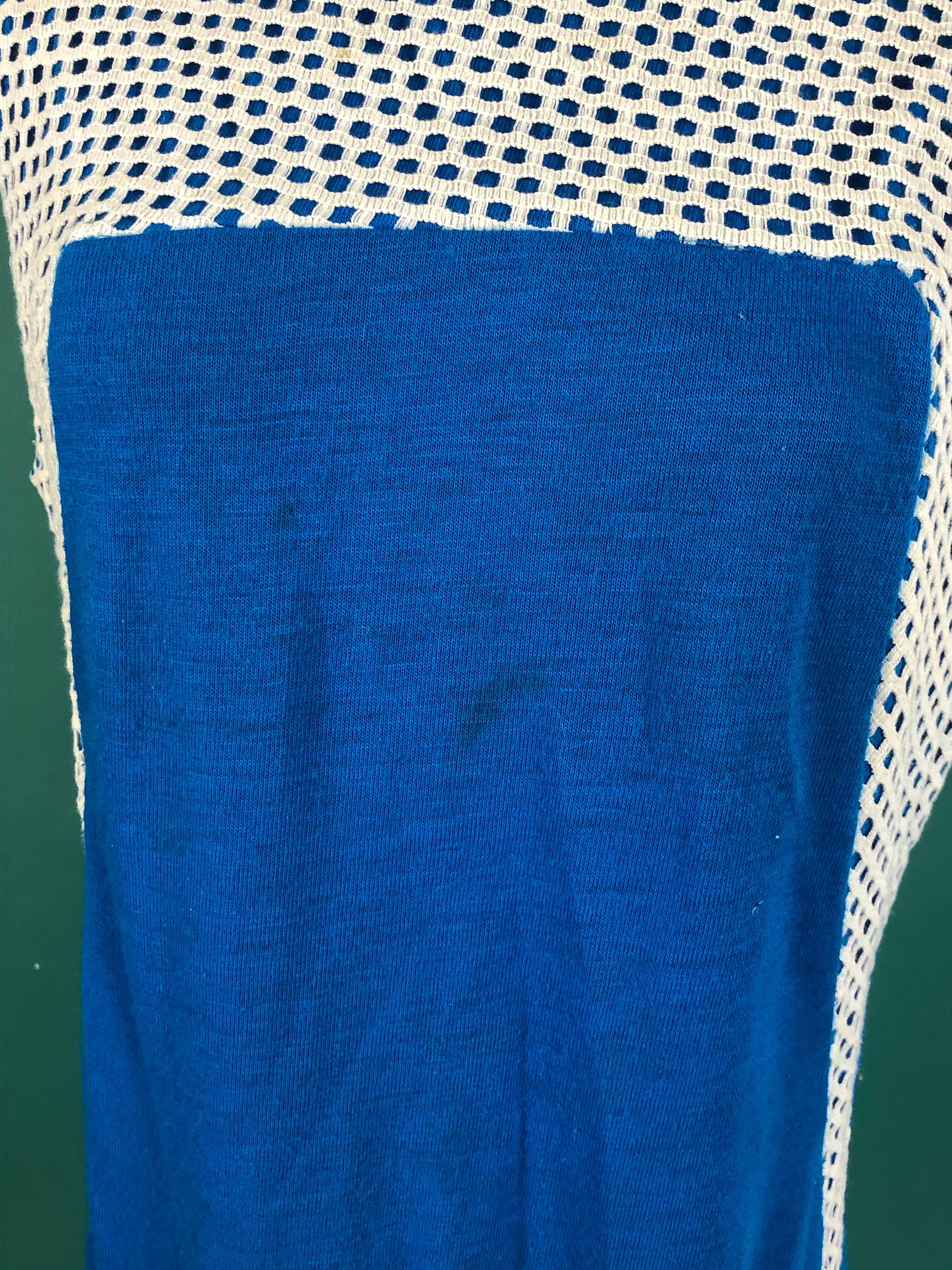 Electric Blue and White Netted Collar Vintage 70s Shoulder Sleeveless Comfy Casual Summer Space Girl Dress size Medium