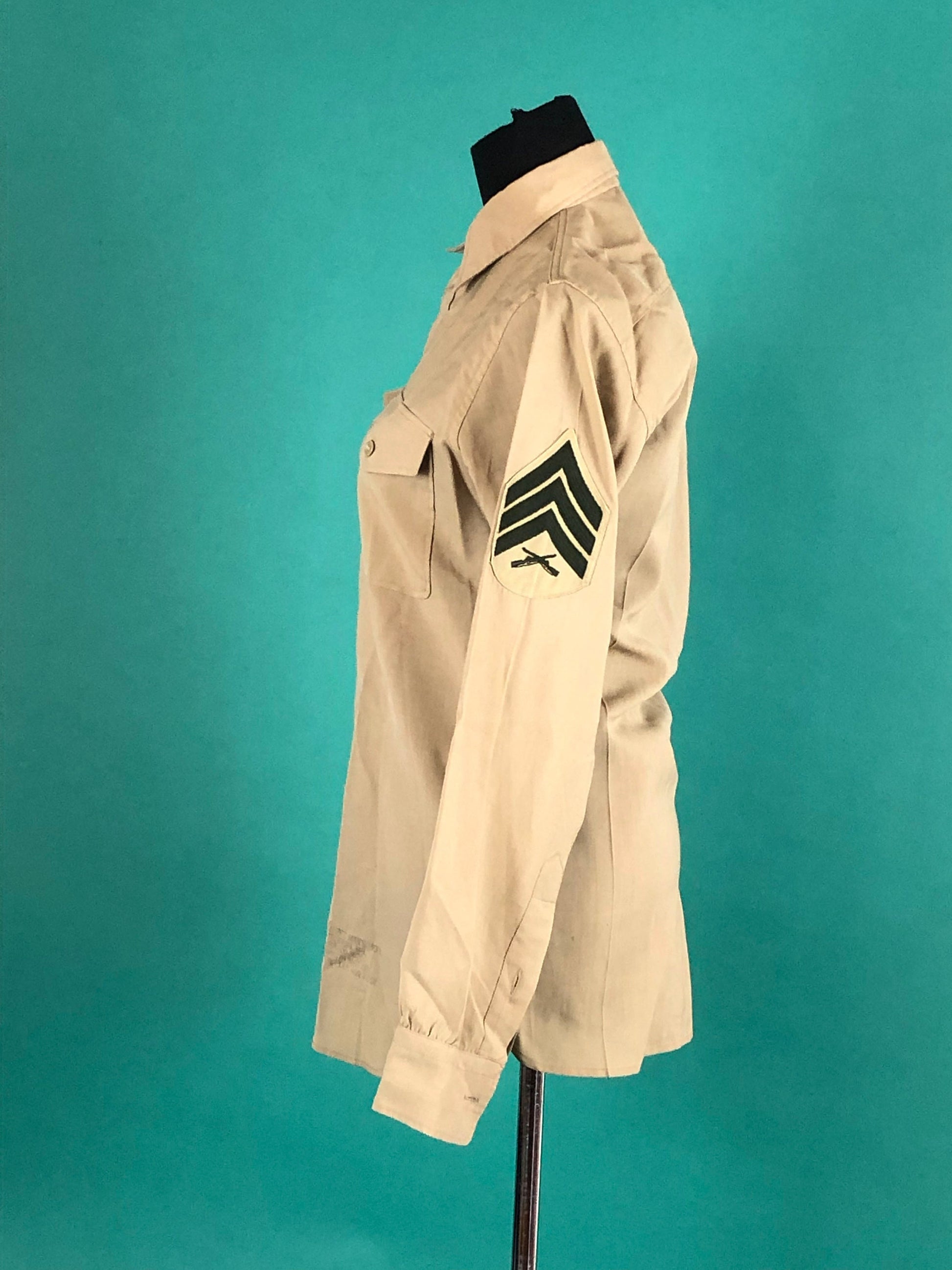 Khaki Boy Scout Army Vintage 80s Long Sleeve Button Up Pocketed Halloween Costume Size Small