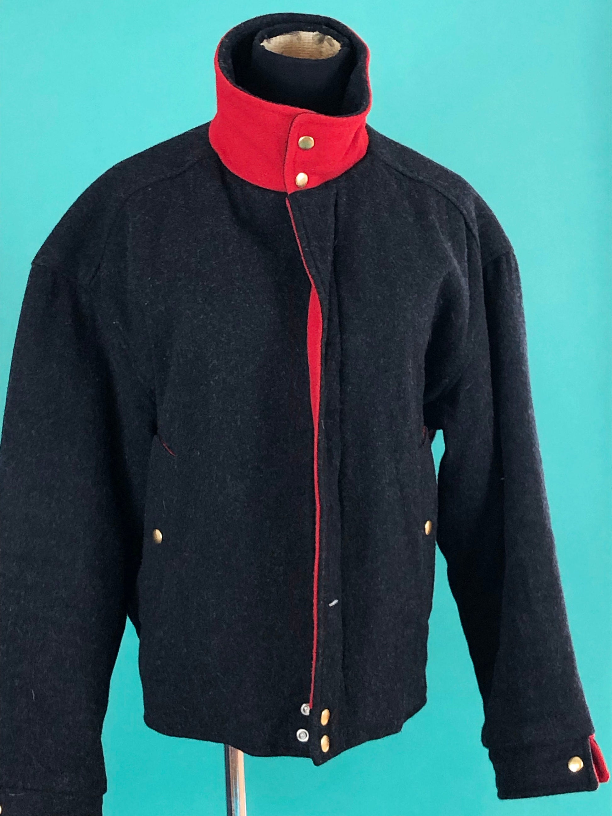 Peppered Gray Black Wool Batwing Vintage 80s Bomber Winter IDFM Jacket size Medium
