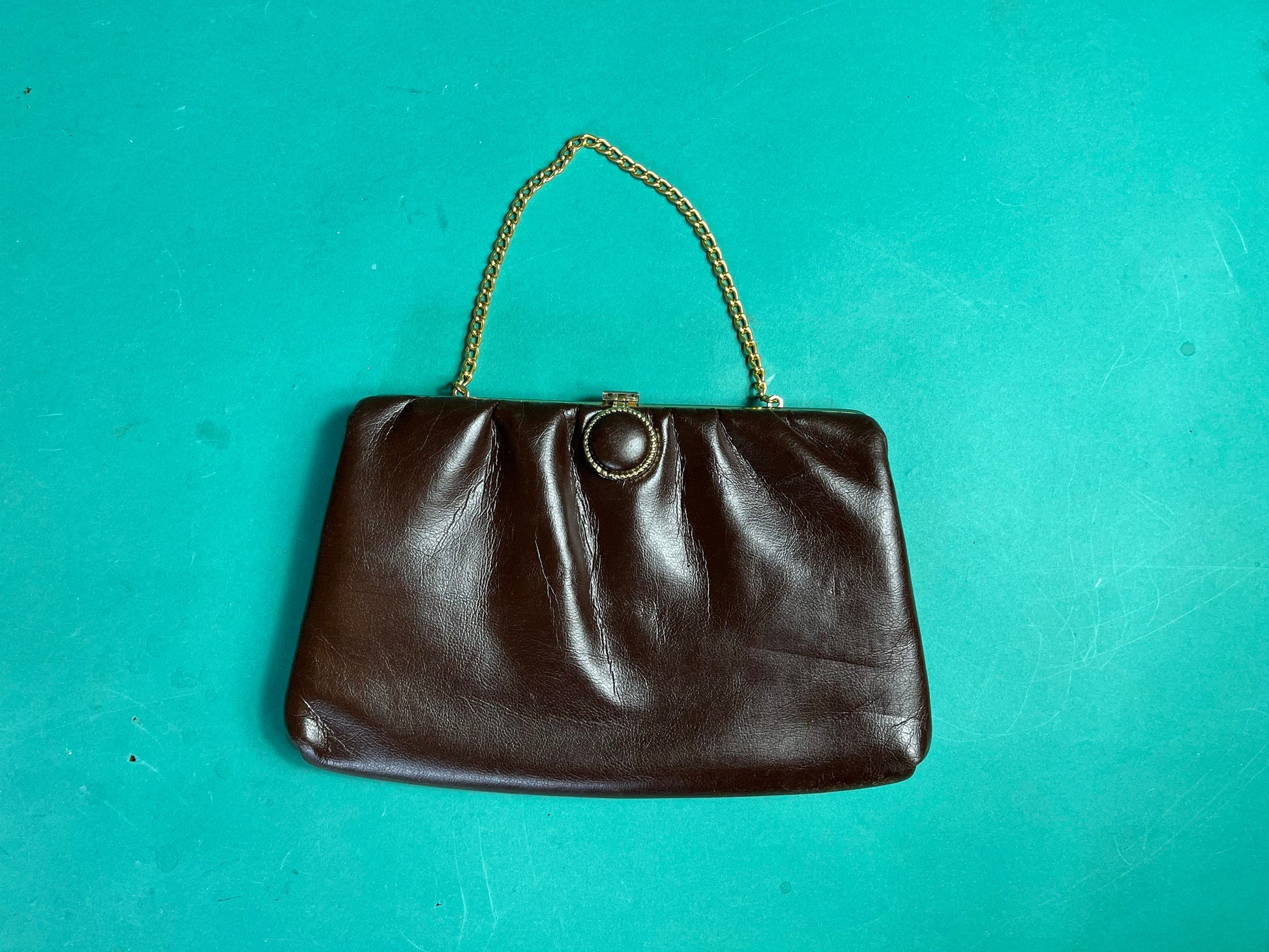 Vintage 1960s Brown Snap Clasp Retro Chain Clutch Purse