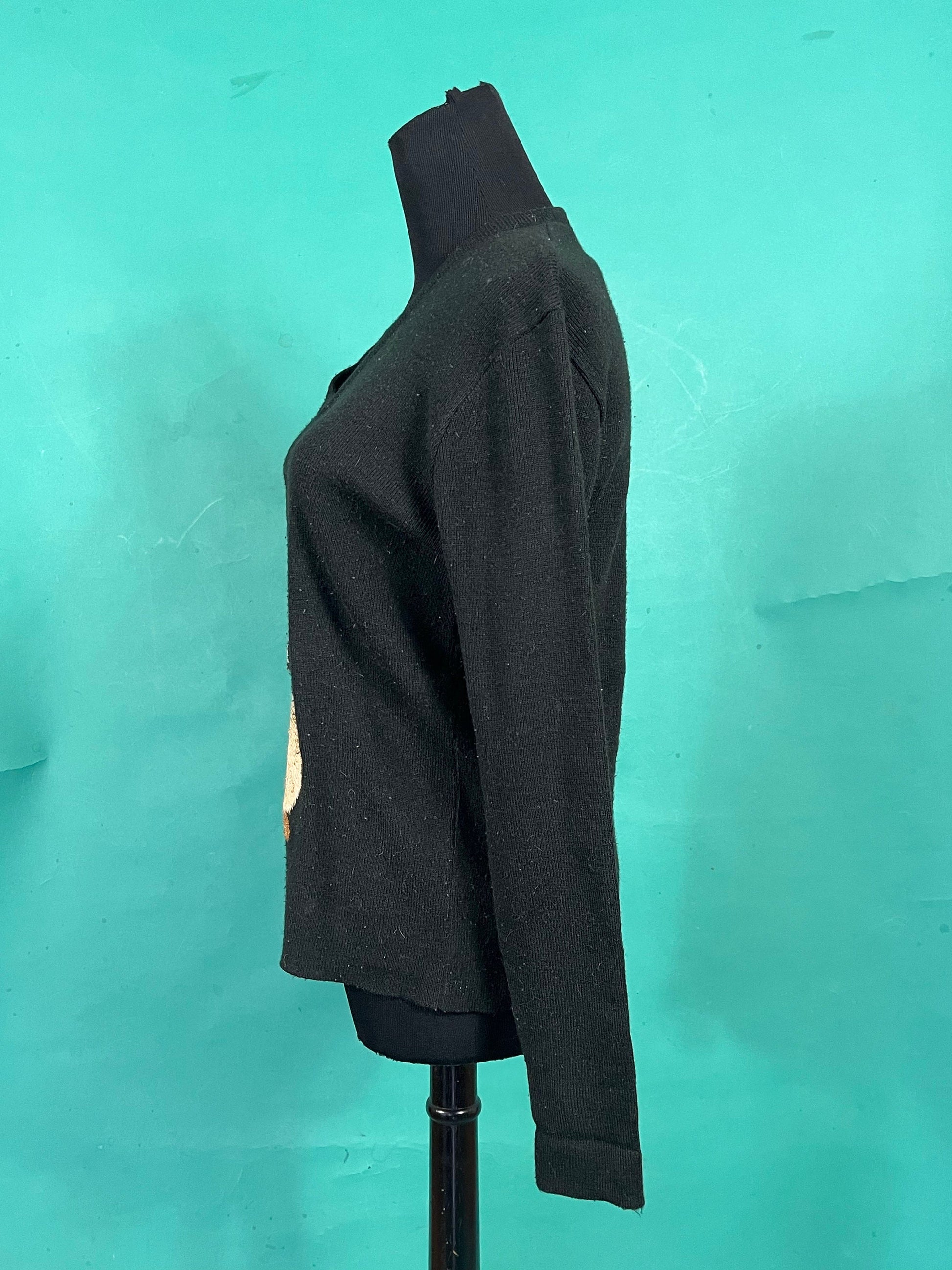 Vintage 60s Le Roy Knitwear Applique Embroidered Koala V Neck Pullover Sweatshirt size Large
