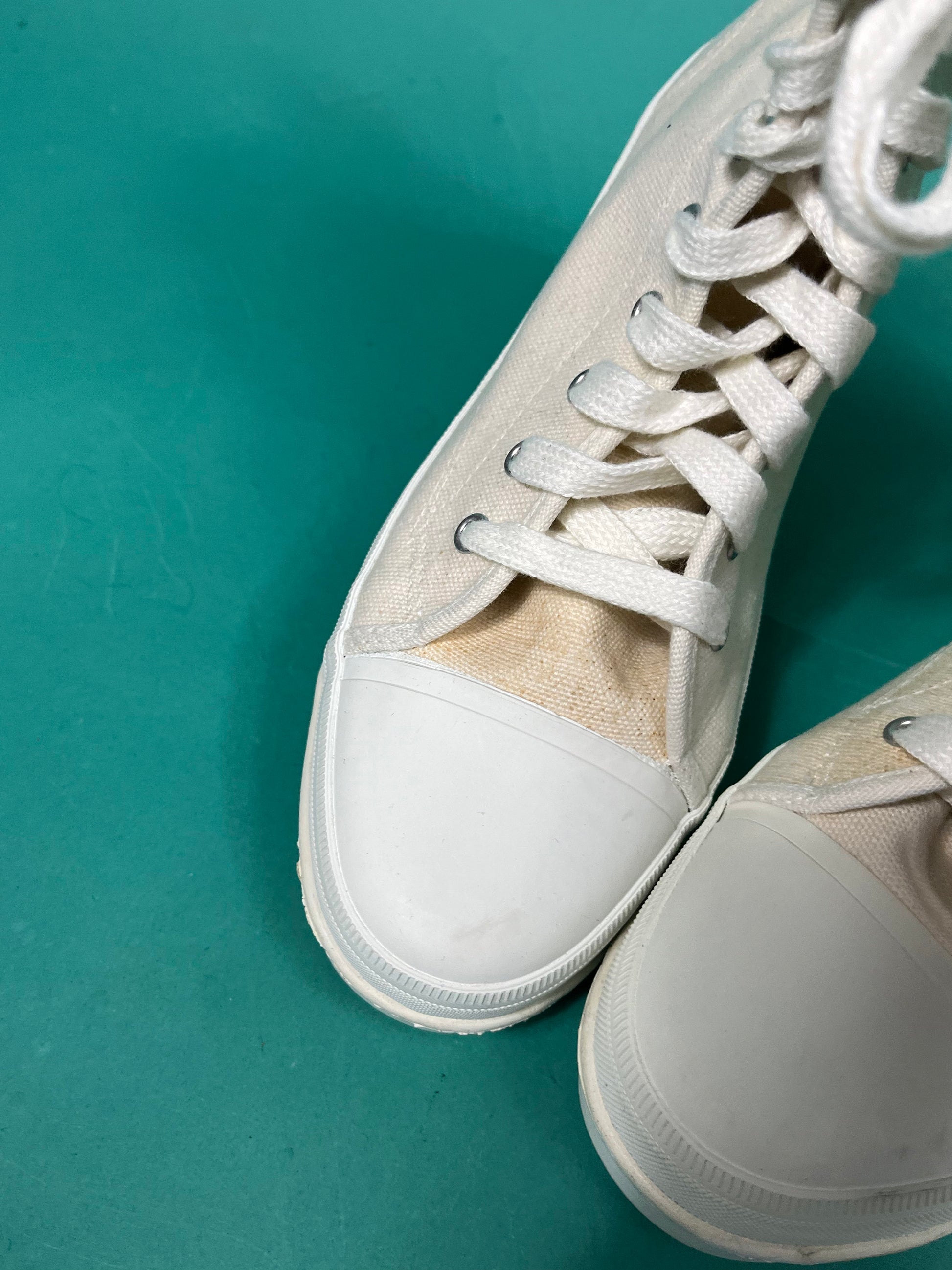 Vintage 90s Cream Canvas Chunk Heel Lace Up Combat Calf Length Manzoni Boots size 9