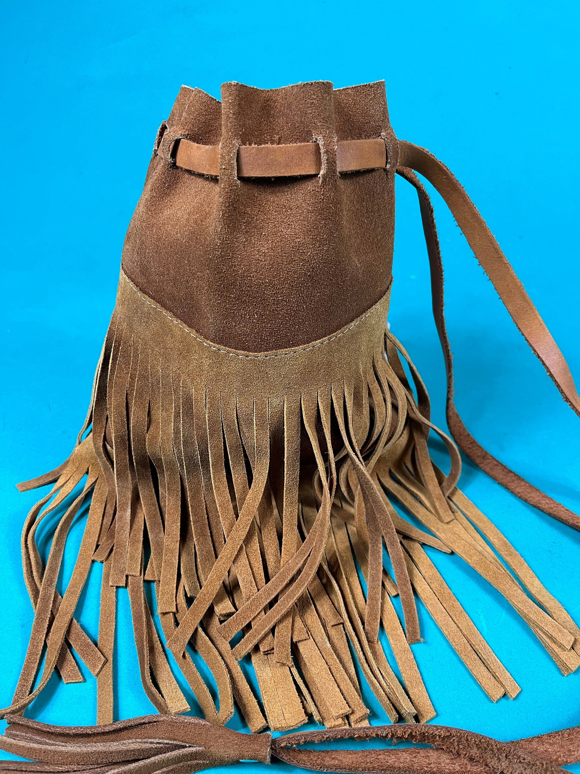 Vintage 90s Rust Suede Tassel Crossbody Bucket Pouch Purse